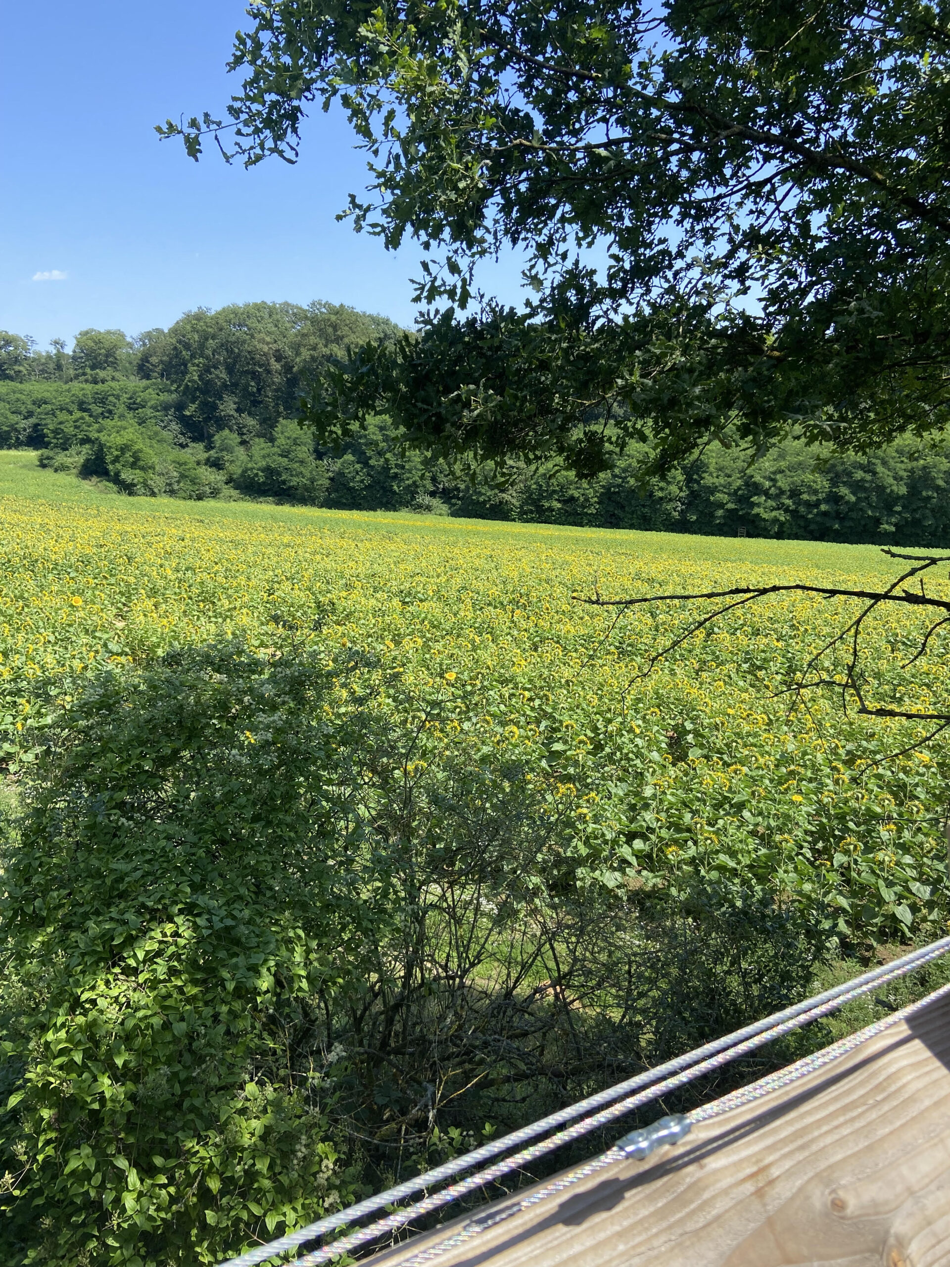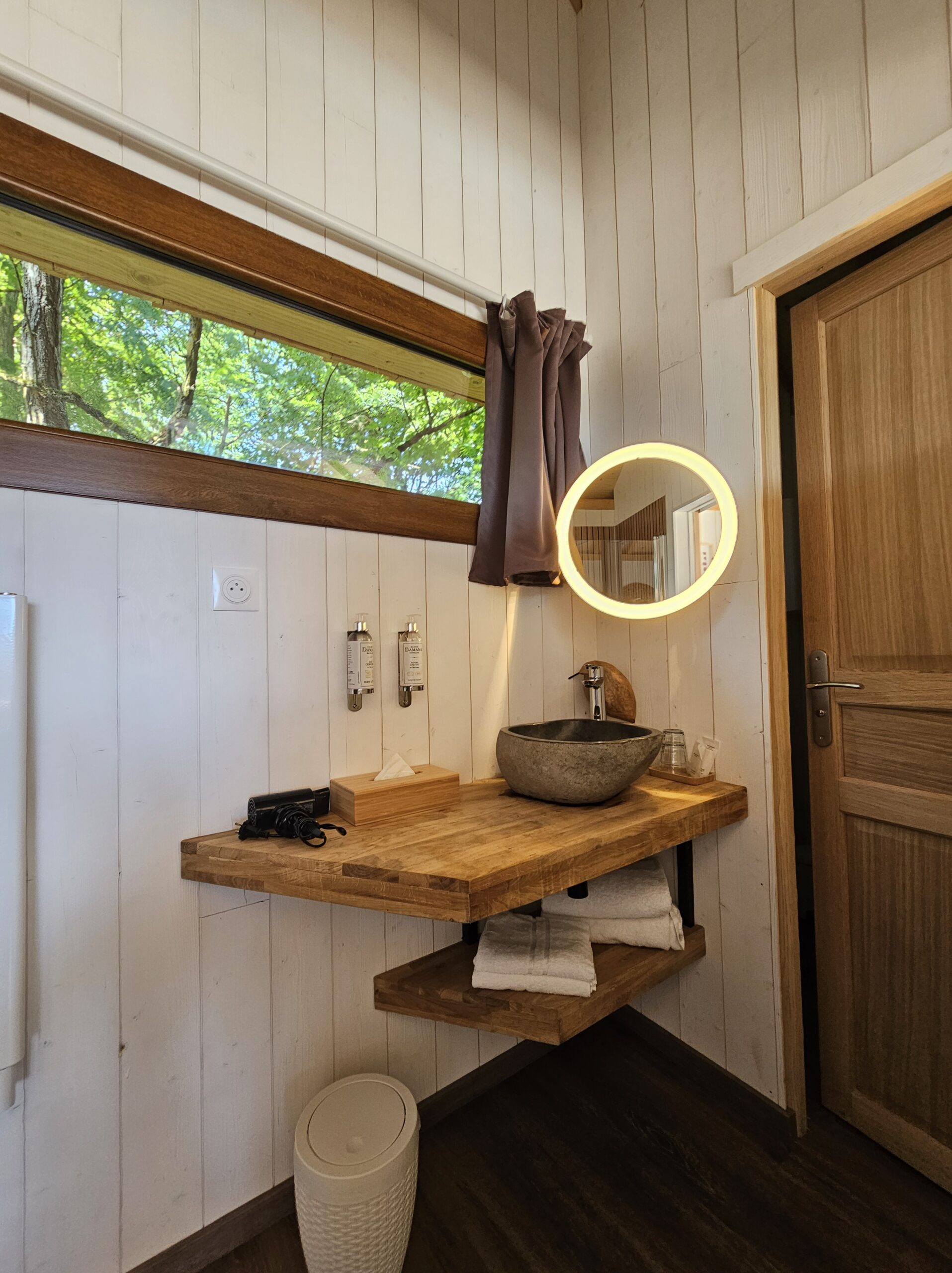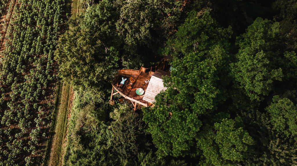 Son spa privatif sur la terrasse est la garantie d’un moment relaxant loin du tumulte parisien. Vous n’avez plus qu’à vous détendre en pleine nature, perchés à 5 mètres 💫 On s’imagine déjà prendre le petit-déjeuner en compagnie des écureuils sautant d’arbre en arbre 🐿️ En plus, on adore la vue sur les champs de tournesol !